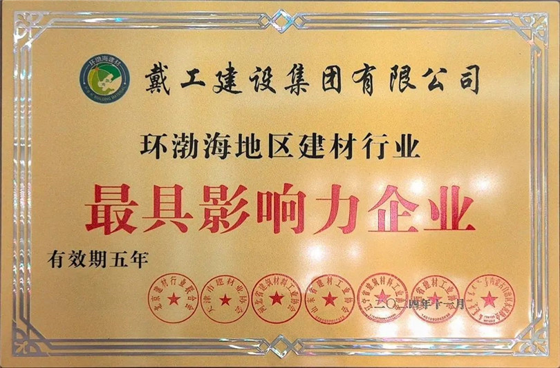 在2024年度環(huán)渤海地區(qū)建材行業(yè)交流盛會上,戴工集團憑借其在行業(yè)內(nèi)的卓越貢獻和深遠影響,榮獲了2024年度環(huán)渤海地區(qū)建材行業(yè)“最具影響力企業(yè)”稱號。這一榮譽,不僅是對戴工集團長期以來堅持品質(zhì)至上、創(chuàng)新驅(qū)動發(fā)展理念的肯定,更是對其在推動區(qū)域建材行業(yè)轉(zhuǎn)型升級、綠色發(fā)展方面所發(fā)揮引領(lǐng)作用的認可。