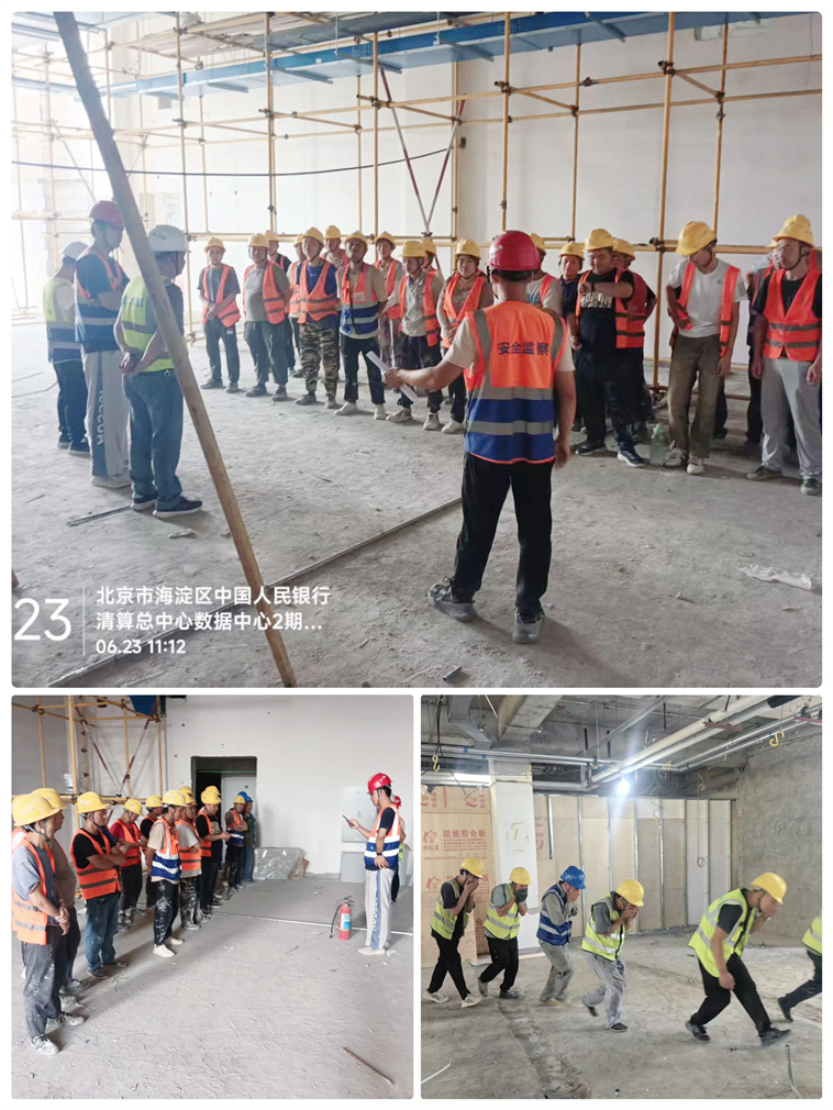 各項目單位在項目經(jīng)理積極組織下,均精心籌備并開展了消防演練活動。演練現(xiàn)場模擬了施工現(xiàn)場突發(fā)火情的場景,隨著警報聲響起,施工人員迅速按照預定路線,用濕毛巾捂住口鼻,彎腰低姿、有序地向安全區(qū)域疏散。整個疏散過程緊張有序,所有人員都在規(guī)定時間內安全撤離至指定地點。隨后,專業(yè)人員對此次疏散演練進行總結,指出存在的問題并提出改進建議,有效提升了施工人員在火災發(fā)生時的應急逃生能力。
